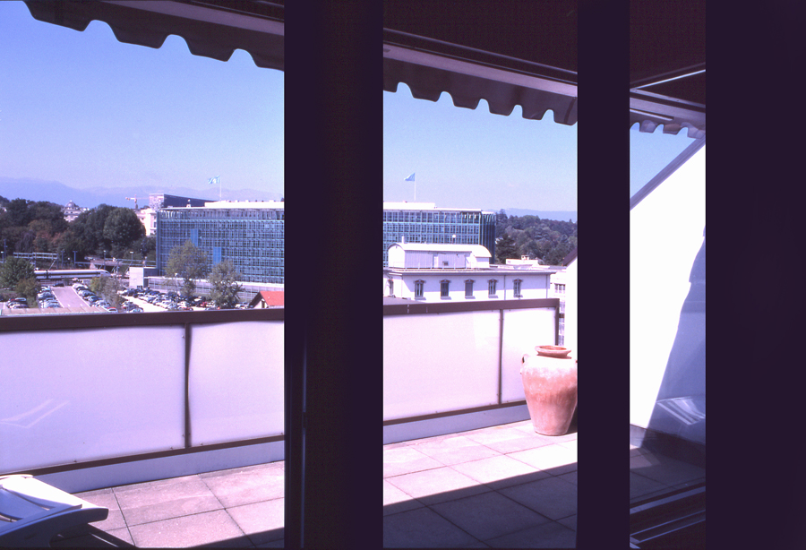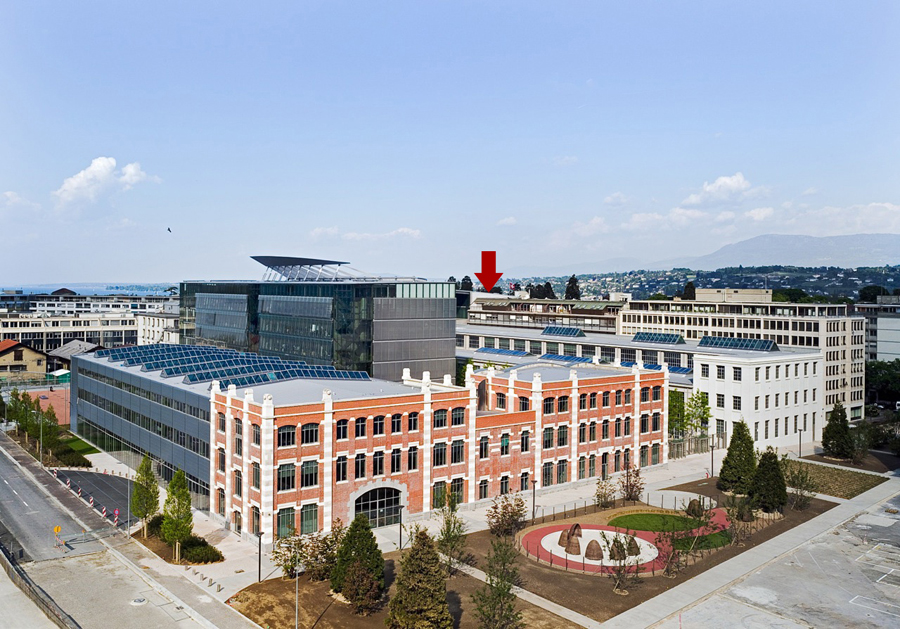 2008 Genève, atelier jouxtant le complexe Merck Serono (Ph. Rainer Viertlböck prise d’un hélicoptère). L’image est tirée de l’ouvrage Merck Serono Geneva, avedition GmbH, Ludwigsburg, ISBN 978-3-89986-095-5 avec l’aimable autorisation du photographe)