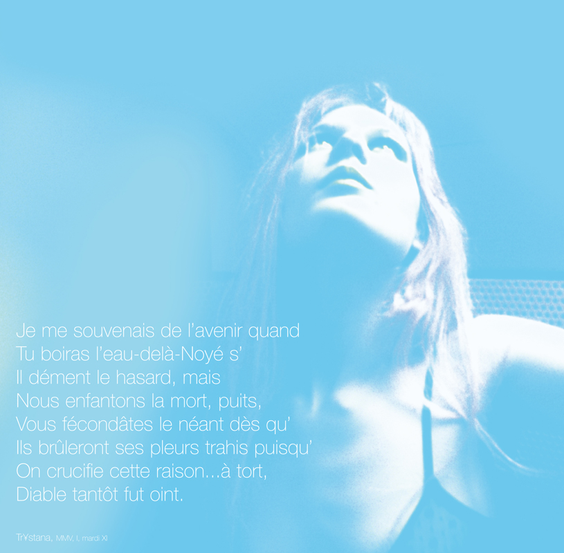« Remembrance du Temps à travers la Mort » est le fruit d’une étroite collaboration : l’image et l’intégration du texte à l’image ont été réalisées par le maître d’après les suggestions de l’étudiante, le texte étant de son stricte ressort. L’étudiante a signé son travail du pseudonyme de Trystana.