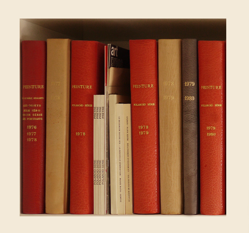 PEINTURE Livre rouge, 1976-1978, LE MODÈLE RÉALISTE (OBJETS, MILE ZÉRO, NADIR SÉRIE, PORTRAITS), 30.5 x 28 cm, 99 pages, reliure en marocain par Michel Magnin, 1/1. Coll. de l’artiste