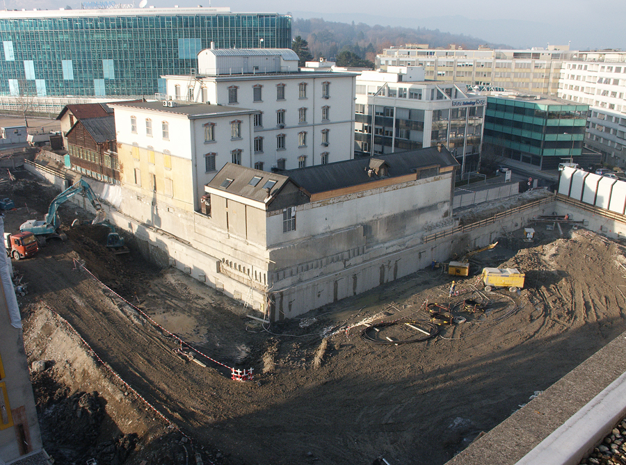 Aujourd’hui, la construction du complexe Serono – à l’initiative d’Ernesto Bertarelli – est terminée : elle a remplacé le Site industriel de Sécheron, créé au XIXe siècle. Elle est l’œuvre des architectes Murphy/Jahn de Chicago avec l’aide de la compagnie de construction Steiner (Opéra de Shangai, Viaduc de Millau). Le complexe hautement transparent, lumineux, « dématérialisé » – selon le propos même de l’un de ses concepteurs (Werner Sobek) – se veut la « métaphore » des rapports harmonieux existant dans l’entreprise et entre celle-ci et l’environnement local. La métaphore architecturale serait également opérante pour que forme et fonction du bâtiment induisent l’esprit de recherche innovateur du groupe dans le domaine de la fabrication des produits pharmaceutiques de pointe. L’entreprise Serono est en effet leader sur le marché mondial de la biotechnologie. Elle produit et commercialise des médicaments destinés à traiter le cancer, la sclérose, la stérilité, le psoriasis et d’autres maladies auto-immunes, inflammatoires et neurologiques.