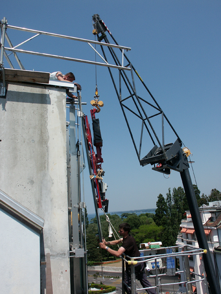 Jusqu’au début de la construction du chantier en 2003, le peintre s’était exclusivement préoccupé de peindre sur toile en privilégiant les grands formats. Durant l’été 2003, en raison d’une sévère canicule et d’un manque vital d’air, les portes-fenêtres de l’atelier du peintre durent rester ouvertes… A cette canicule exceptionnelle, la démolition des anciennes installations de Sécheron avait ajouté une pollution de poussières très importante. Le sol en était chaque jour recouvert, alors que les plus ténues flottaient en suspension dans l’air : respirer était devenu problématique, peindre impossible…