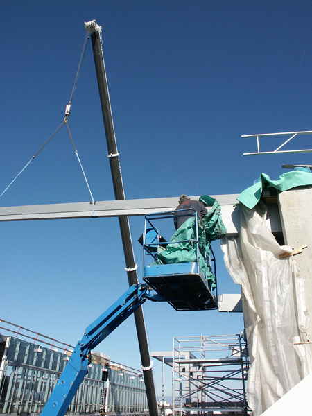 Son atelier est situé au sixième étage d’un immeuble jouxtant l’un des actuels bâtiments de l’entreprise, dans un espace traversant qui donne, d’une part, sur l’avenue Blanc, et d’autre part, sur le cœur même du complexe. Vu de l’atelier, celui-ci semble en constituer une extension naturelle… Conservé avec son gros œuvre brut en béton et les structures métalliques de la toiture apparentes, l’espace du peintre communique sans contradiction avec le bâtiment tout de verre et de métal nouvellement construit.