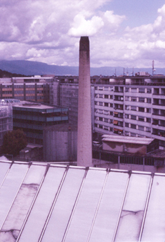 Les toutes premières images de 2003 illustrent la démolition de la grande cheminée installée en bordure du chemin des Mines, à ses yeux, l’emblème historique du site industriel de Sécheron. Cette cheminée, figure symbolique de l’érôs, est entrée dans plusieurs des dernières compositions de l’artiste entre 2010 et début 2011.