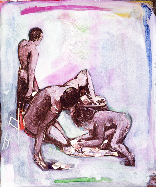Quelques œuvres de la Suite Polaroïd (Offenbach Série) accompagnent une unique peinture de grand format, Autour de Danaé, la cinquième de la série Danaé. Voir sur le Site la page POLAROÏD.