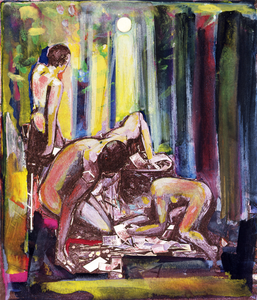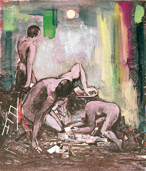 Danaé 5. « Autour de Danaé », 1984, acrylique sur toile, 180 x 450 cm