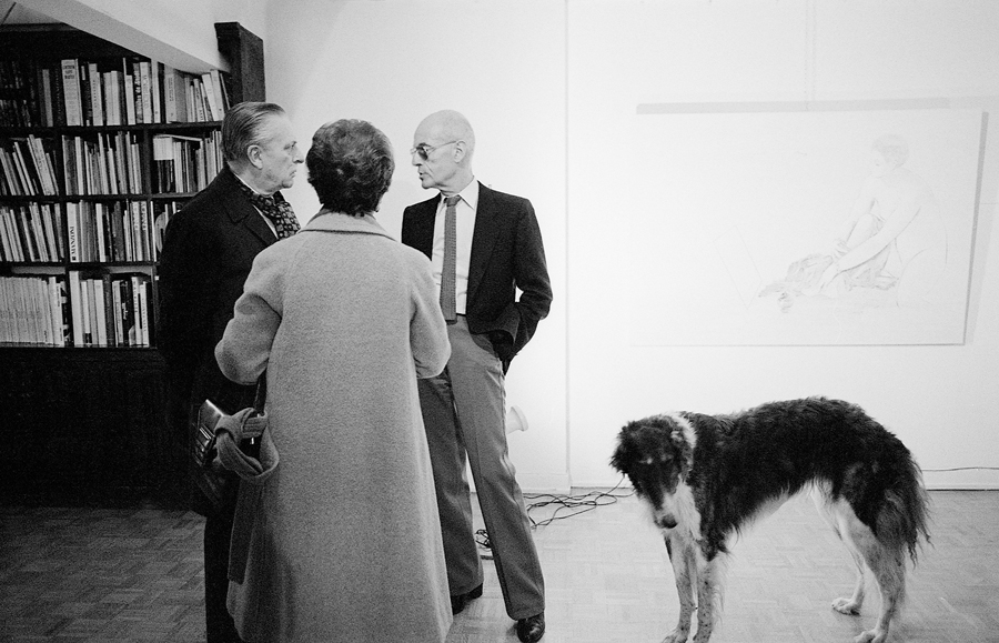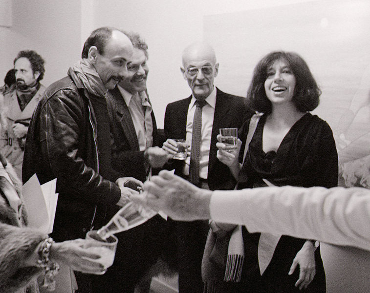 Gabrielle Jeanneret, inconnue, Bernard Kretz, JCP, Michel Butor devant « Suzanne au miroir pour Tintoret », 1984