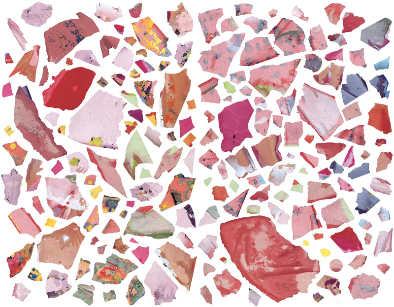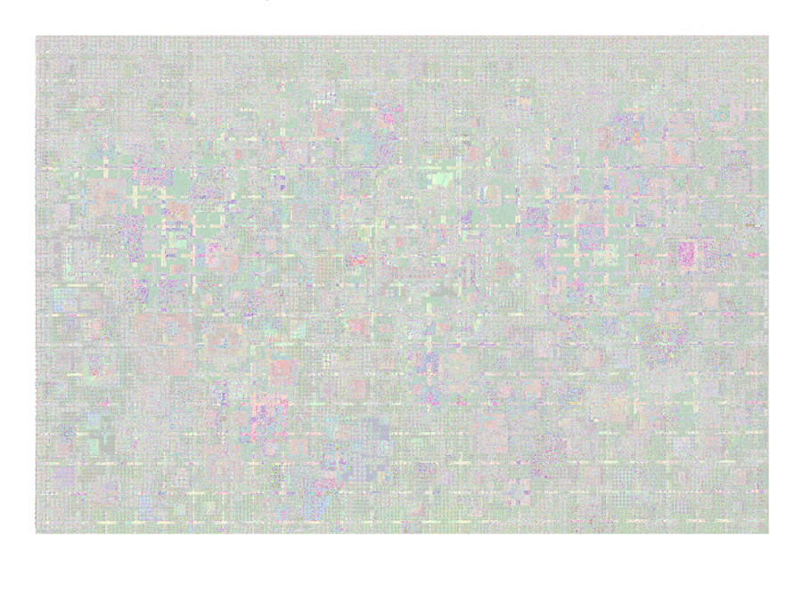 45 variations digitales d’après les 4 œuvres de base, tirées sur papier argentique et mises sous verre acrylique (A1 à A6 / B1 à B13 / C1 à C6 / D1 à D20), 45 x (73 x 100 cm)