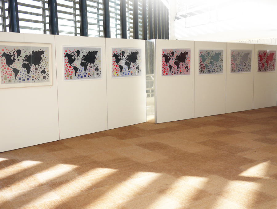 Mon projet, d’abord intuitif, n’était pas de représenter la tragédie du 11 septembre, mais, en décidant de faire de la carte de la terre la matière même de mon travail, je désirais symboliquement rendre présent un « mouvement » allant de la catastrophe vers un apaisement géopolitique : j’avais pour ambition de donner à « voir » une notion renouvelée de la paix dans le monde.